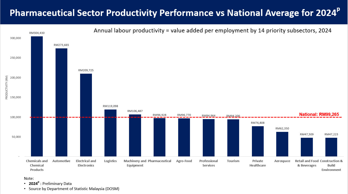 Despite being positioned in the middle tier, the pharmaceutical sector’s productivity level demonstrates solid competitiveness among the 14 priority subsectors. Its performance reflects stable value creation and a strong foundation for future growth, especially as Malaysia pushes for higher adoption of advanced technology, regulatory improvements, and innovation-driven production across the life sciences industry.